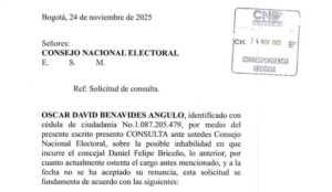 Afirma que esta práctica de inscribir candidatos inhabilitados con la expectativa de “resolver después” en los estrados judiciales se ha vuelto recurrente y no debería seguir ocurriendo. Por ello, exige al CNE, a la Procuraduría General de la Nación y a la Registraduría Nacional del Estado Civil que actúen de inmediato, y solicita al partido que explique públicamente por qué está promoviendo a un aspirante que legalmente no podría posesionarse.