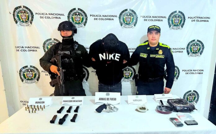 El detenido, conocido con el alias de ‘Zambrano’, fue puesto a disposición de la autoridad competente como presunto responsable de los delitos de fabricación, tráfico y porte ilegal de armas de fuego, así como tráfico, fabricación o porte de estupefacientes.