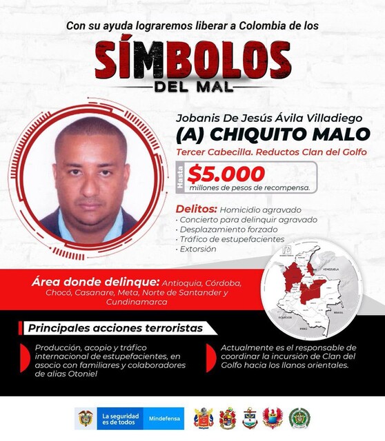 Alias ‘Chiquito Malo’ fue desmovilizado del Bloque Bananeros de las Autodefensas Unidas de Colombia en 2004, sin embargo, volvió al radar de las autoridades colombianas y estadounidenses en 2018 y, especialmente, en 2021 luego de tomar el mando tras la baja de alias ‘Marihuano’, por parte del Ejército.