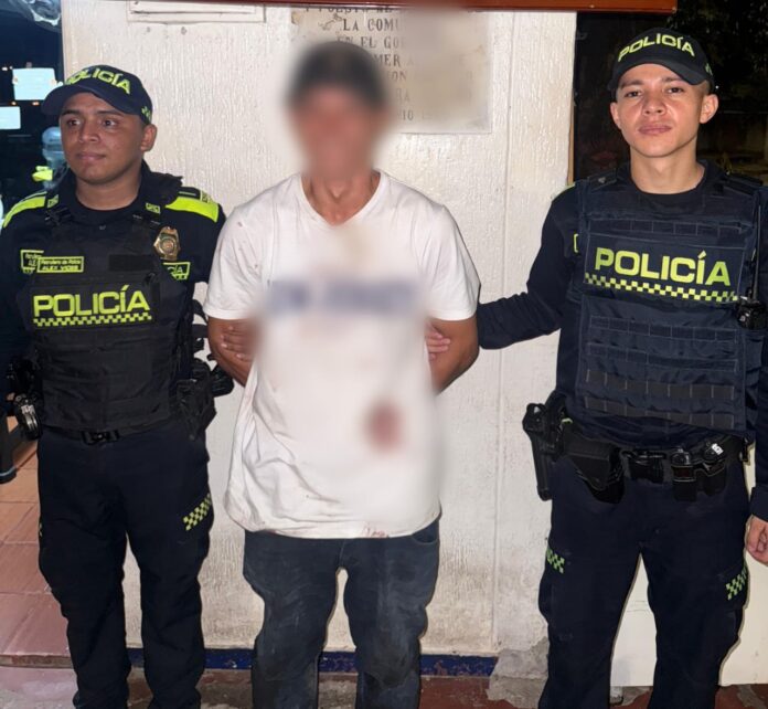 Los uniformados actuaron con rapidez, logrando detener al agresor en el lugar de los hechos y asegurar el arma cortopunzante utilizada en el ataque.
