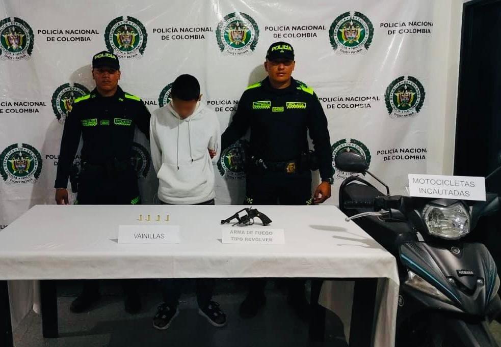 Ante la alerta de la comunidad, la Policía activó de inmediato el plan candado y, con apoyo de la Seccional de Investigación Criminal (SIJIN), desplegó un operativo que permitió ubicar y capturar al presunto agresor, a quien se le halló en su poder el arma de fuego utilizada en el hecho, además de inmovilizar la motocicleta en la que se desplazaba.