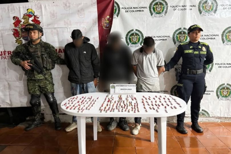 La acción fue desarrollada de manera articulada entre unidades del Ejército Nacional y la Sijín de la Policía en el barrio 7 de Agosto. En el lugar, las autoridades interceptaron a dos hombres que se encontraban en compañía de un adolescente, quienes presuntamente harían parte de una red dedicada a la comercialización de sustancias ilícitas en esta zona del departamento.