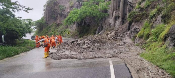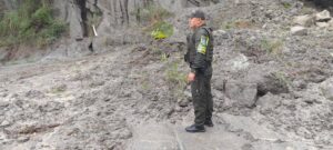 La emergencia se presentó en el kilómetro 38+300, donde se evidenció la caída de material rocoso y lodo sobre la calzada, generando un alto riesgo para los conductores que transitan por este importante corredor vial del departamento.