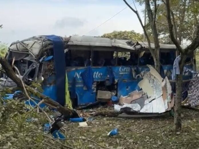 El accidente involucró al bus de número interno 6110, que cubría la ruta intermunicipal cuando, por causas que aún son materia de investigación, se salió de la vía y terminó volcado lateralmente.