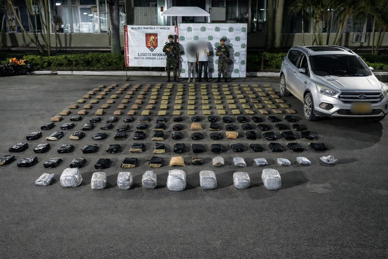 Durante la inspección al automotor, los militares hallaron varios paquetes que contenían marihuana, lo que permitió la captura en flagrancia de los ocupantes. En total, fueron incautados cerca de 196 kilogramos del estupefaciente.