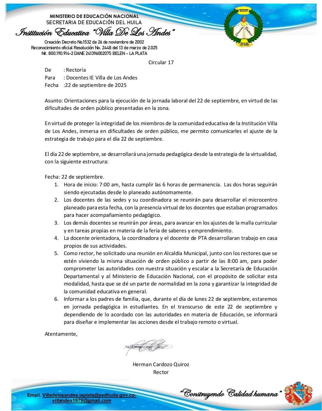 Con esta decisión, la Institución Villa de Los Andes refleja la resiliencia de una comunidad que, pese a la adversidad, busca garantizar el derecho fundamental a la educación de sus jóvenes.