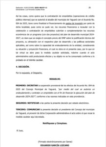 Con esta determinación, el municipio no podrá continuar con el trámite del préstamo aprobado por el Concejo hasta que el proceso judicial concluya. Solo cuando el Juzgado emita un fallo de fondo, se conocerá si Yaguará podrá o no acceder al crédito para financiar los proyectos de su Plan de Desarrollo.