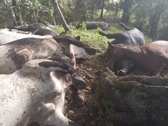 En el municipio de Teruel, una descarga eléctrica en la vereda La Armenia ocasionó la muerte de 14 reses y una yegua. La Alcaldía municipal adelanta la evaluación de la situación y coordina las acciones correspondientes.
