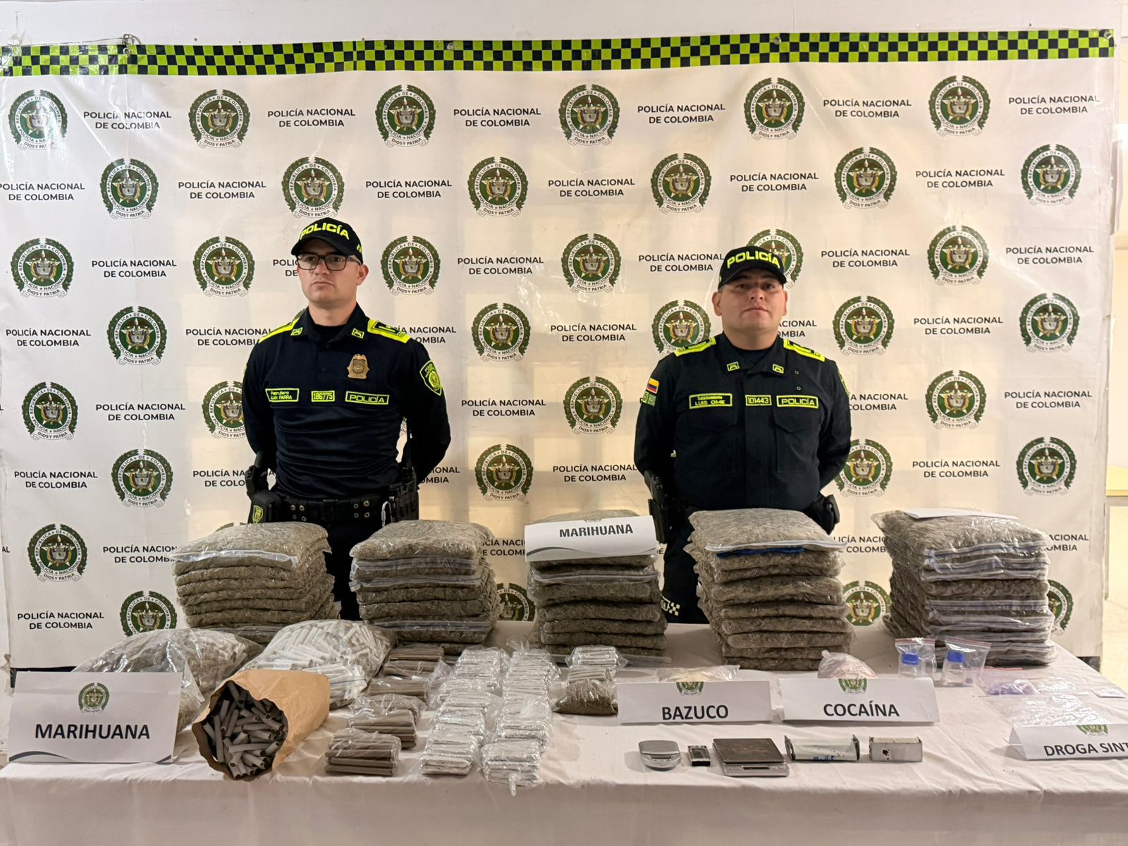 En el interior fueron encontradas diversas sustancias ilícitas, entre ellas 51 libras de marihuana, 1.745 dosis de marihuana, 225 dosis de cocaína y 200 dosis de bazuco, lo que evidencia una significativa afectación al tráfico local de estupefacientes. Así mismo, durante la revisión se hallaron sustancias sintéticas como 19 pastillas de éxtasis, 35 pastillas de clonazepam, 9 dosis de LSD, una bolsa con tusi y dos frascos de popper.
