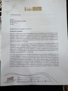López también dejó constancia de que continuará ejerciendo sus funciones conforme a la Constitución y la ley, y anunció que se reserva la posibilidad de acudir a acciones jurídicas para la protección de sus derechos fundamentales y políticos ante las instancias competentes.