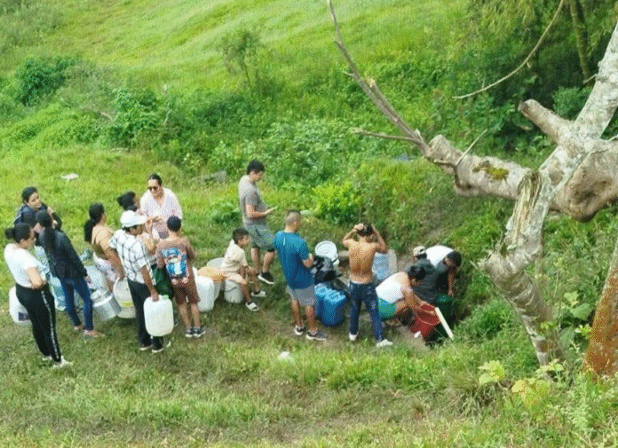Desde muy temprano, numerosos habitantes llegan hasta el punto conocido como el “Chorrito de la Virginia”, una fuente natural ubicada en la zona rural, para recolectar agua ante la emergencia ambiental que afecta al municipio.