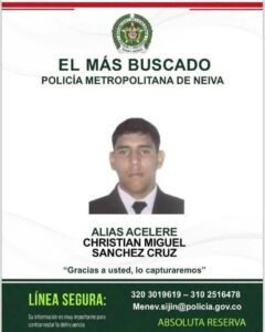 Quienes tengan datos que contribuyan a su captura pueden comunicarse a las líneas 320 301 9619 y 310 251 6478, o escribir al correo electrónico [email protected]. La Policía garantiza absoluta reserva a quienes entreguen información.