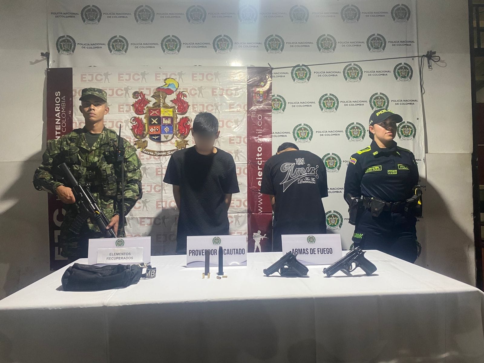 La rápida reacción de la Policía y el Ejército permitió frustrar el hurto de dos motocicletas que habían sido robadas mediante atraco en el sector conocido como Guacanas, en el municipio de Garzón. Durante el operativo fue capturado un hombre, aprehendido un adolescente y se incautaron dos armas de fuego.