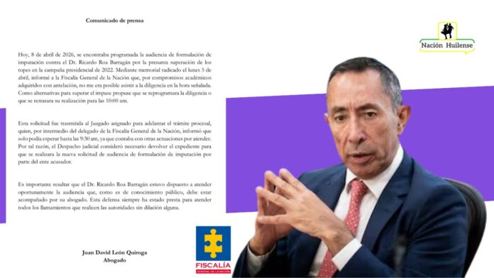 De acuerdo con el abogado Juan David León, mediante un memorial radicado el pasado 5 de abril se notificó al ente acusador sobre la imposibilidad de asistir a la diligencia en la hora establecida. En el documento, la defensa propuso dos alternativas: reprogramar la audiencia o retrasarla hasta las 10:00 de la mañana.