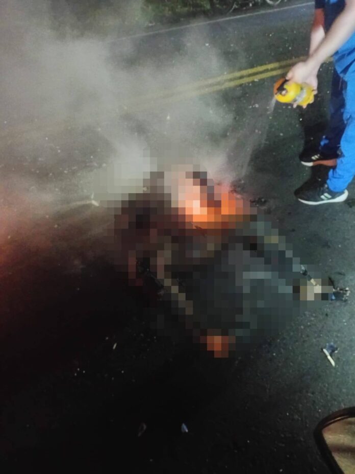Tras el choque, la motocicleta resultó envuelta en llamas, lo que agravó la situación y dificultó cualquier intento de auxilio por parte de otros conductores que se encontraban en la vía. Los organismos de socorro llegaron minutos después para atender la emergencia y asegurar el área mientras las autoridades iniciaban los procedimientos de inspección.
