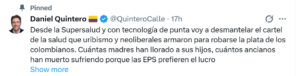El exalcalde de Medellín, Daniel Quintero, reaccionó a su designación como nuevo superintendente nacional de Salud con un mensaje contundente, en el que anunció una ofensiva contra la corrupción y una transformación profunda del sistema en el país.